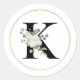 Elegant White Floral Monogram Letter K on White Classic Round Sticker