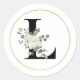 Elegant White Floral Monogram Letter L on White Classic Round Sticker