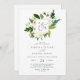 This elegant white floral monogram wedding invitation is perfect for a classic wedding. The modern vintage design features beautifully romantic ivory and cream watercolor rose and peony flowers with dark green leaves, greenery and botanicals. Personalise the card with your initials monogram.