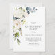 With a popular neutral colour scheme, this retirement party invitation design features a cascading bouquet of white watercolor florals with trailing greenery. The flowers include roses, hydrangeas and matching mixed florals for a lovely effect. Elegant font pairings add to the modern style of this design. Personalise the easy-to-use text template with your event details.