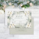 The front of the card features an elegant floral design in watercolor, with delicate white blooms and luscious sage green leaves. The timeless design exudes a sense of romance and sophistication, setting the tone for your wedding celebration.