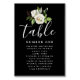 Elegant DIY wedding seating chart and table number. It begins with a deep black background that frames the white design. A white rose floral posey sits at the top of the table number card that also has the guest names on it. Table is written in a large, modern, carefree flowing script. Number and the table number is on the second line. It is written in a classic serif font. Up to 10 guest names follow. Simply delete the ones you don't need. This guest seating chart/table number sign is part of the Antique Rose collection. It contains all the signs you need to customise your wedding ceremony and reception. There should be a link to it on this page. Please contact me, if you can't find it or need help with an item.