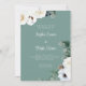 Overall, our elegant wedding invitation in green with white floral bouquets is a stunning and memorable choice that will set the tone for a beautiful and romantic wedding day, infused with the beauty of nature.