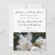 A beautiful flowering bush with light white blossoms accented by deep green foliage. A white background allows the text to stand out. Customise with all of your wedding information.