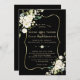 Elegant White Flowers Gold Frame Black Wedding Invitation