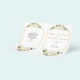 Elegant card design featuring watercolour delicate white flowers and green leaves, a faux gold frame, on a white background. On the back white flowers bouquet. Use Personalise tool to add your info, change fonts, font's colours. For matching items, please, visit my Delicate White Flowers Collection.