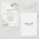 Elegant card design featuring watercolour delicate white flowers and green leaves, a faux gold frame, on a white background. On the back white flowers bouquet. Use Personalise tool to add your info, change fonts, font's colours. For matching items, please, visit my Delicate White Flowers Collection.
