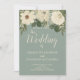 Elegant White Flowers Green Sage Wedding Invitation