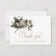 Classy elegant winter white and ivory flowers bouquet with seasonal foliage and branches and a chic gold handwritten calligraphy script making a beautiful wedding thank you simple card. ++++++++++++ Easy to personalise with your text on both sides! ++++++++++ Perfect for late autumn fall or winter floral themed weddings.