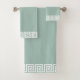 Elegant White Geometric Frame on Light Green Bath Towel Set