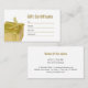 Simple white elegant gift certificate with a photo of gold gift box. Elegant and classic design, perfect for beauty related companies.