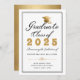 Announce your graduation in style with this elegant custom announcement card. This typography design features the words Graduate Class of 2025 with your name, school, and date to personalise in gold and white accented by a faux gold graduate cap and framed in black. The back of the card is white. Designed by Susan Coffey.