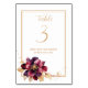 Elegant white gold burgundy double sided Table Number.. Floral in golden and burgundy on a white background. Frame and text in a golden colour. This is a double sided table card with the same text on both sides. Customise with the right text for your event and the different table numbers. This will be an elegant decoration and centre piece on the tables with the same cohesive theme as the rest of the collection for a cohesive finish.