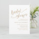 Elegant and simple bridal shower invitation template with modern and sophisticated handwritten style font in faux gold on a white background. Perfect for a chic bridal shower, this customisable invitation is ideal for a sophisticated celebration. Enhance your bridal shower with this stylish design, featuring a modern font and faux gold accents. Create a unique and memorable invitation for your bridal shower with this elegant template.