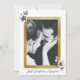 A romantic, beautiful piece of art, a Christmas rose, hand-drawn in graphite pencil, decorates this "First Christmas Married" photo card. Set against a gold frame, it is elegant and simple, stylish and sophisticated, a modern classic.