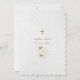 Unique card design featuring watercolour delicate white flowers and faux gold outlined flowers, gold cross, pink shape with gold frame, on white watercolor paper background. Use Personalize tool to add your info. For matching items, please, visit my New Baptism/Christening Celebration Collection.