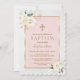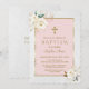 Elegant White Gold Floral Cross Girl Baptism Invitation
