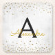 Elegant White - Gold Foil Confetti Monogram Square Paper Coaster