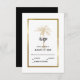 Provide your guests to reply to your wedding invitation with this elegant RSVP card featuring modern script in black text including an artistic palm tree and metallic gold frame on the front of the card. A black background is on the back.