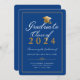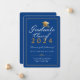 Announce your college graduation in style with this elegant custom class of 2023 graduate announcement card. This formal typography design features the words Graduate Class of 20XX with your degree, name, school, and date to personalise in gold and white script accented by a faux gold graduate cap and framed in gold on a royal blue background. The back of the card is royal blue. Designed by Susan Coffey.
