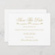This elegant wedding save the date card features a simple faux gold script typography design on a white background accented by a heart flourish . Personalise with your names, date and town/state. Coordinates with our Elegant White & Gold Monogram wedding invitation suite designed by artist Susan Coffey.