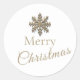 Elegant White Gold Snowflake Merry Christmas Classic Round Sticker