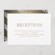 Elegant White Gold Modern Wedding Reception Enclosure Card. Pure elegance with antique gold coloured text on white with a printed back featuring an original mixed media antique gold coloured modern abstract artwork print with pale watercolour leaf pattern overlay. Personalise with your own text.