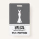Elegant White Gown on Grey - Stylish Simple Desig ID Badge