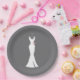 Elegant White Gown on Grey - Stylish Simple Design Paper Plate