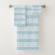 Elegant White Greek Pattern on Light Blue Bath Towel Set