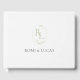 Elegant and chic with youthful and romantic undertones. This lovely wedding guest book features couple initials inside a soft green floral frame, couple names and wedding date at the back. The template includes a set of stylish contemporary fonts in a soft green against an off-white background on both sides.