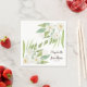 Simple and classy, these custom watercolor wedding napkins are the perfect addition to your big spring or summer big day celebration. Features hand-painted watercolor white flowers with green leaves and foliage in the corners. The brown and green text can be changed to fit all of your party planning needs.