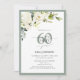 Elegant White Grey Green Floral 60th Birthday Invitation