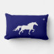 Beautiful elegant white horse silhouette and star on navy blue background Lumbar Pillow.