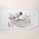 Beach towel with a magical illustration of a beautiful white horse head. Surrounded by cute little pink flowers. Boho elegant vibe for horse lovers.