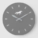 Elegant white horse silhouette on grey Wall Clock. Text can be pesonalized. A great present for anniversaries, birthdays, new home, new office, etc.