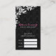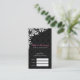 Elegant white floral lace swirls over black floral damasks pattern, appointment business card template. For Event designers, wedding planners