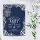elegant white lace navy blue Retirement Party invitations. farewell party invitations.