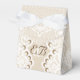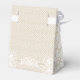 Elegant white lace with pearls beige wedding favour box featuring white lace on sand beige and your initials or monogram. Text in brown and white. Note that lace is “printed on” and not real fabric. This monogrammed elegant, shabby chic sophisticated and romantic design is part of a wedding set and is perfect for a chic spring, summer or fall/autumn wedding.