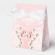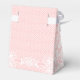 Elegant white lace with pearls pink wedding favour box featuring white lace on light pink and your initials or monogram. Text in brown and white. Note that lace is “printed on” and not real fabric. This monogrammed elegant, shabby chic sophisticated and romantic design is part of a wedding set and is perfect for a chic spring, summer or fall/autumn wedding.