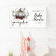 Cute and elegant little pumpkin theme baby shower welcome banner featuring an illustration of a white pumpkin with faux gold glitter, burgundy red flowers, and green foliage. Perfect for a gender neutral shower in the fall.
