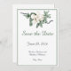 This elegant and simple save the date card is the your first piece of a beautiful wedding suite stationery set. It features a hand drawn original design of a white magnolia blossom on a stem.