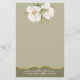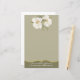 Elegant muted moss green stationery, with faint graphics of two white magnolia blooms decorating the top. A decorative gold tone border, at the bottom forms the footer, with custom white text ready to personalise. Lovely everyday stationery or for special occasions. Makes a nice gift too.