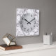 Elegant White Marble and Grey with Silver Square Wall Clock