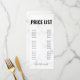 Flat Menu Card, Size: 10.2 cm x 22.9 cm, Paper: Basic Semi-Gloss
