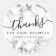 Elegant, trendy business thank you stickers featuring white marble look borders top and bottom. Customisable text: "Thanks for your business" with your company name or URL below.