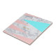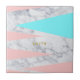 Trendy and modern design featuring pink and mint colour geometric triangles and faux white marble.