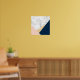 Stylish, modern and abstract geometric triangles colour block design featuring faux gold, marble, navy blue and light peach colour block.