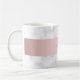 Stylish and modern design featuring faux white marble and faux rose gold strip.
