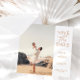 This stunning design combines simplicity with elegance, creating a timeless and sophisticated announcement for your upcoming wedding. The clean white background serves as the perfect canvas for the beautiful script typography, which highlights your names and wedding date in a minimalist and stylish way. Add a personal touch by including your favourite engagement photo, making it a cherished keepsake for your loved ones. To change details, click «Details». To move the text or change the size, font, or colour, click «Edit using Design Tool». Designed to coordinate with for the «Chloe» Wedding Invitation Collection. View the collection link on this page to see all of the matching items in this beautiful design.